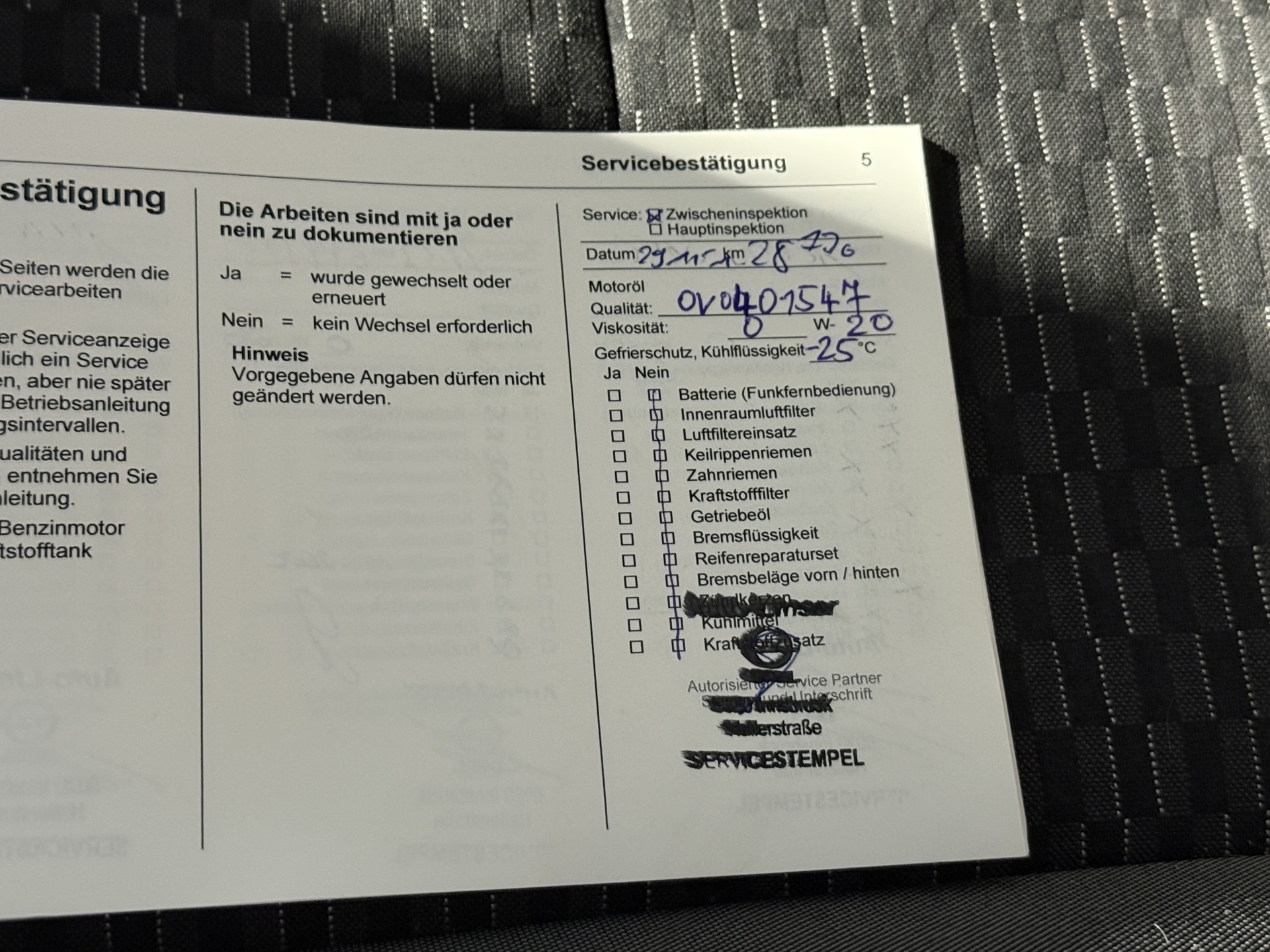 - Motorservice wird vor Übergabe neu durchgeführt